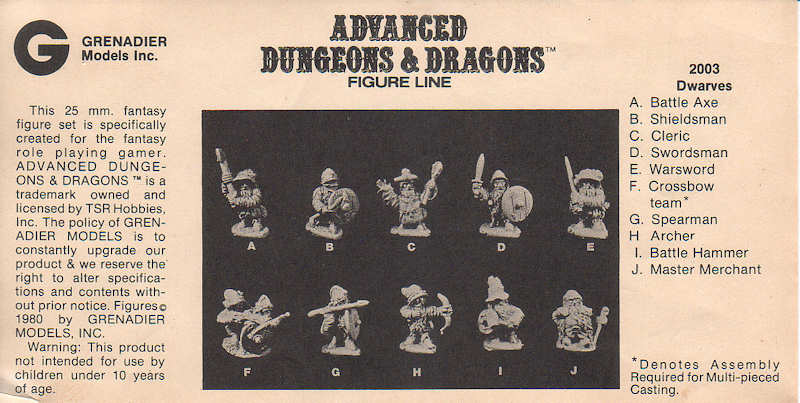 Grenadier's Small boxes sets were certainly the best miniatures offered by Grenadier for thier AD&D line. A lot of great monsters are found in these boxes and the organization of Adventurer and NPC miniatures into boxes of dwarves, Halflings, hirelings, fighters, etc. was handy.